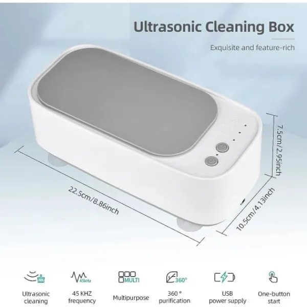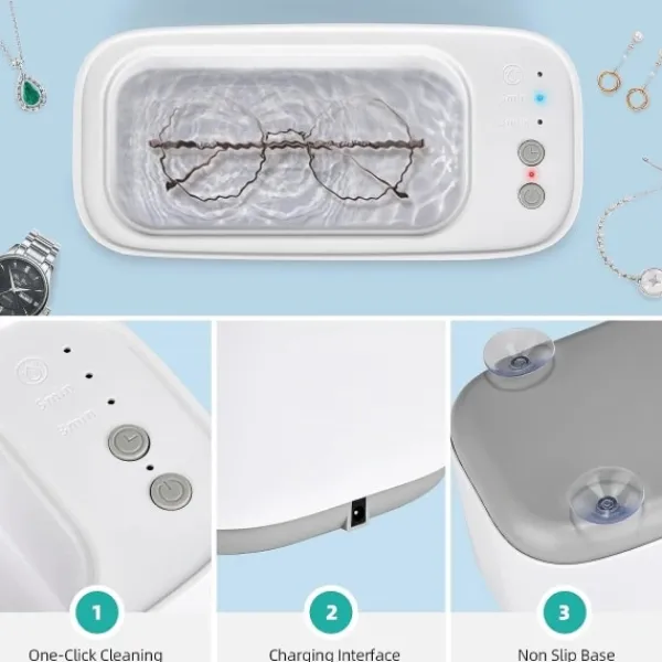 Mångsidiga användningsområden: Denna ultraljudstvätt kan rengöra glasögon, smycken, klockor, halsband, tandproteser, ringar, porslin och mer. Obs: Ultraljudstvättar är idealiska för att rengöra smuts från ytor eller springor. De är dock mindre effektiva för att ta bort överdrivna oljefläckar (som svett- och oljefläckar på glasögon) eller oxidlager på smycken.