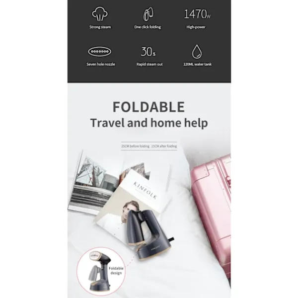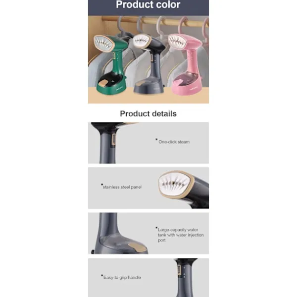 【Lättviktig och Kompakt】Den ergonomiska handhållna designen ger en bekväm hanteringsupplevelse. Lätt att använda och förvara, denna klädångare är hopfällbar och idealisk för hem, kontor och resor. 【Snabb Uppvärmning】Vår vertikala klädångare värms upp snabbt på cirka 25 sekunder, klädångaren har en kontinuerlig ångfunktion. Använd låsknappen för kontinuerlig ånga utan att behöva hålla in strömbrytaren. 【Energieffektiv Reseångare】Ångan är stark och koncentrerad, enheten värms upp snabbt, den kraftfulla och kontinuerliga ångutsläppet gör att klädångaren enkelt kan ta bort de tuffaste rynkorna och lukterna. 【Mångsidig Användning】Den multifunktionella klädångaren har flera funktioner: strykning, fuktning, ångning och dammning. Säker att använda på ett brett utbud av tyger, idealisk för kläder, gardiner och sängkläder. 【Säker och Lättanvänd Ångstrykning】Enknappsmanövrering gör den enkel att använda. Stoppknappen stoppar omedelbart ångutsläppet, vilket avsevärt förbättrar säkerheten vid användning. Vår reseångare kan användas både vertikalt och horisontellt.