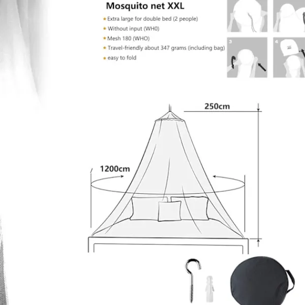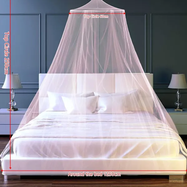 【Högkvalitativt material】100 % högkvalitativ polyesterfiber, mjuk, bekväm, miljövänlig, säker att använda, stark rivstyrka, lätt att rengöra. Levereras med en bärväska. 【Stor storlek】Övre ringdiameter: 0,60 m, myggnätshöjd: 2,5 m, nätbottenomkrets: 12 m. Den är perfekt för dubbelsängar, enkelsängar och spjälsängar och så vidare. 【Enkel installation】Vårt sängöverdrag är enkelt att använda. Krokar ingår, du behöver bara ta bort nätet från väskan när du plockar upp det, fäst sedan kroken i taket och häng upp nätet. 【Toppkupol】Den höga och runda designen på toppen gör att den ser enkel men lyxig ut. Den noggranna utseen designen är mycket lämplig för att dekorera rummet. Den kan ge människor en känsla av elegans och romantik, enkelhet och lyx. 【Brett användningsområde】Myggnäten kan effektivt förhindra insekter och damm, och även förhindra inträde av andra skadedjur som spindlar, kackerlackor, flugor etc. Skydda din familj och dina myggor från flugor.