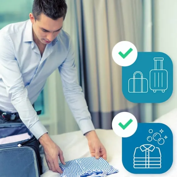 - Passar lätt i åkpåsar för vård av plagg på språng.