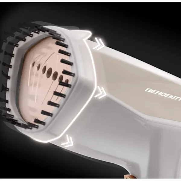 – Borsthållare — perfekt för att samtidigt stryka och rengöra kappor eller stoppade möbler från hår och trådar.