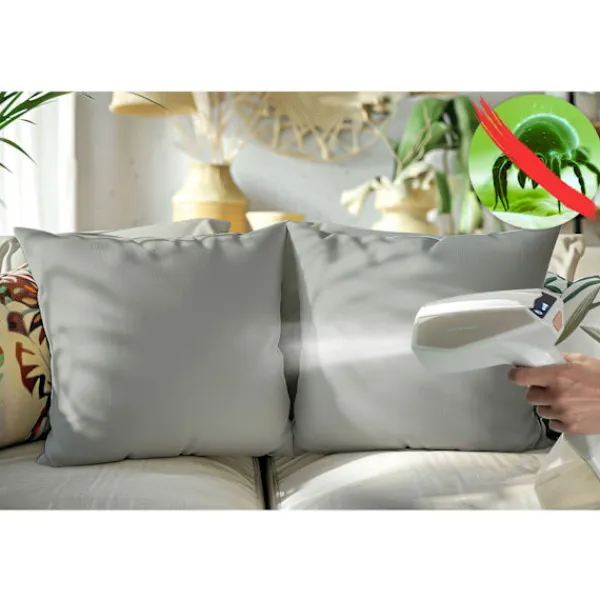 Steamer hjälper avsevärt till att bekämpa kvalster och bakterier som utvecklas snabbt på soffor, filtar och kuddar. Lätt att ta bort veck från stoppade möbler: fräschar upp och slätar ut klädda möbler. Tack vare hög temperatur och kraftfull ångutsläpp, eliminerar du kvalster och skadliga mikrober från stoppningar och möbler till 100%.