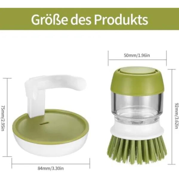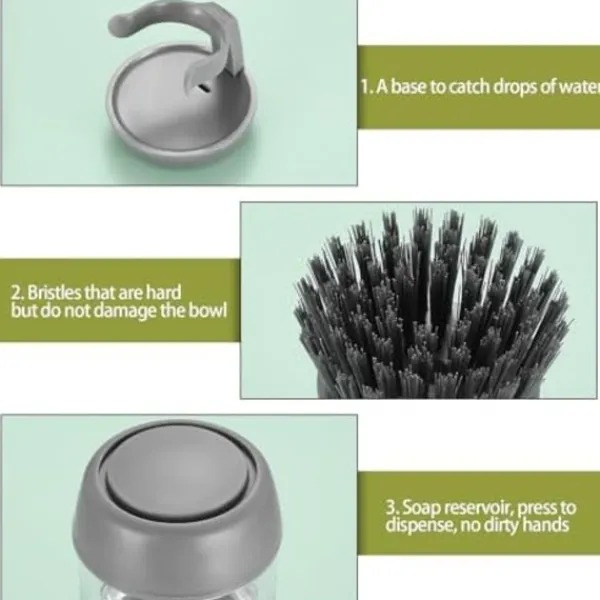 Premium Diskborste med Hållare: Premium diskborste är utrustad med en inbyggd diskmedelspump och en robust avrinningsställ. Efter rengöring, placera helt enkelt borst handtaget tillbaka i hållaren för förvaring, vilket kan fånga vatten droppar och hålla bordet torrt. Lös alla dina rengöringsproblem med lätthet.