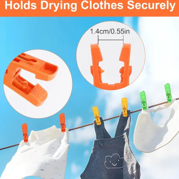 【Mjukt grepp, inga skador på kläder】Torklineklämmorna har en bredare, mjuktandad design vid käftarna, vilket minskar trycket på kläderna samtidigt som de hålls säkert, och förhindrar märken på kläderna i stor utsträckning.