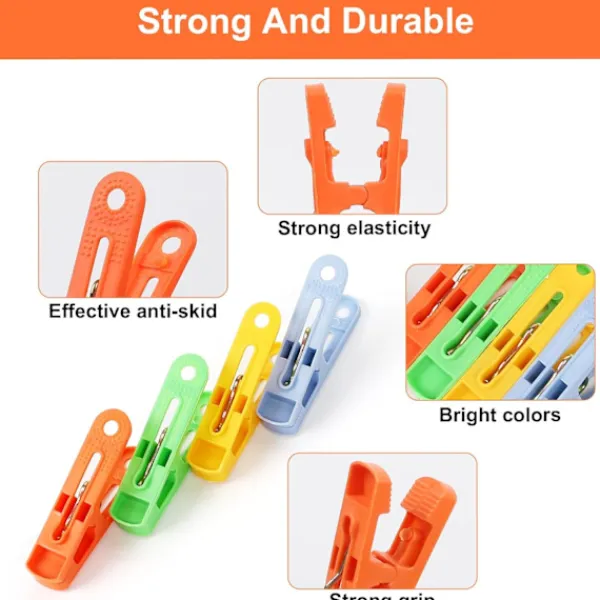 【Klämmor för bred användning】Klämmorna kan användas för trädgårdsfester, semestrar, stränder, camping och andra tillfällen, det är ett utmärkt val för att fästa handdukar på torkande kläder, strumpor, dockor eller på strandstolar, solstolar, poolstolar.