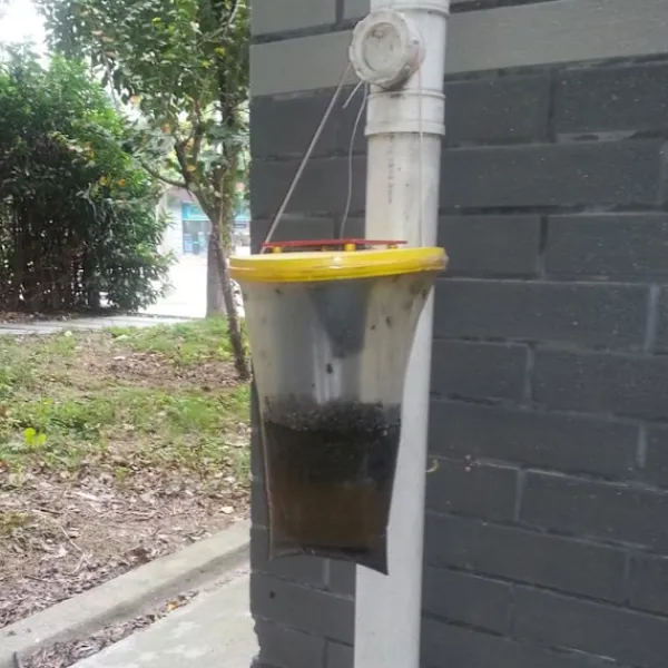 Lätt att använda – Våra utomhusflugfällor är lätta att sätta upp. Öppna helt enkelt det röda höljet på fällan, fyll påsen med vatten och bete, sätt sedan på det röda locket i rätt läge och häng upp den. När du är redo att kassera, täck helt enkelt det röda locket och släng i soporna.