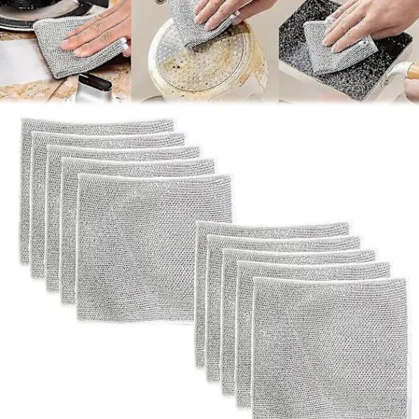 Mångsidiga disktrasor av ståltråd för vått och torrt. Mångsidiga disktrasor av ståltråd är en förstklassig disktrasa av metalltråd som skrubbar och rengör disk, diskhoar och mer. Disktrasan av ståltråd är perfekt för våt- och torrengöring, och ståltrådsduken är utformad för att enkelt ta bort envisa fläckar från disk, kastruller, bakplåtar, ugnar och mer utan att repa någon yta.