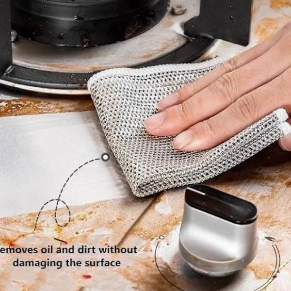 Rengöringsduk för spishäll i köket. Mångsidiga disktrasor är hållbara och återanvändbara, och dess effektiva prestanda kommer att uppfylla alla dina köksbehov. Med sin mångsidiga design är denna förstklassiga disktrasa av metalltråd ett måste för alla kök.