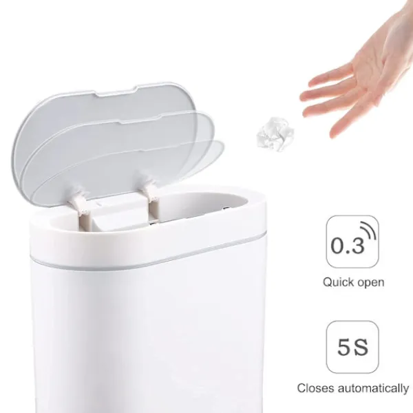 Så här använder du denna lilla skrivbordskorg: tryck in 2 knappar på båda sidor och skjut enkelt av det yttre skalet för att sätta i och ta bort soppåsar. En knapp enkel att öppna och stänga sopkorgens lock med ett fingertopp