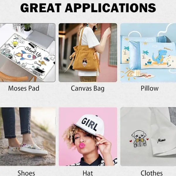 Den är lämplig för att överföra foton eller text på kläder, hattar, handväskor, musmattor, tygväskor, örngott, plagg som babybodys och mer