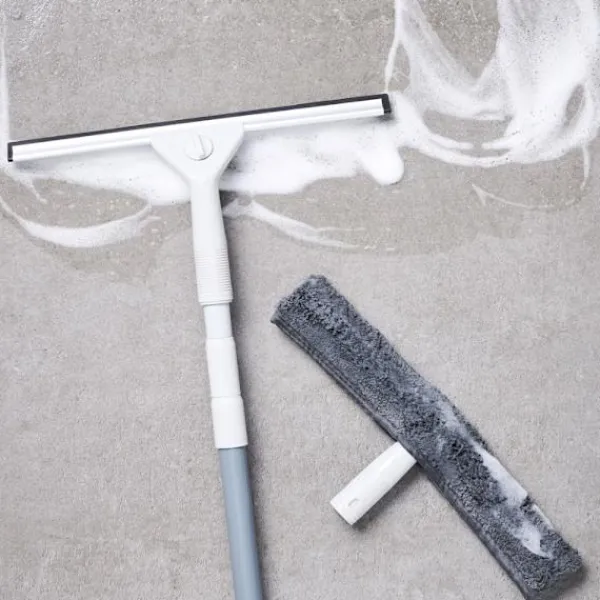 Fönsterputsen blir busenkel med detta set för fönstertvätt. I paketet ingår en fönsterskrapa med teleskopstång som går att fälla ut till 1,2 meter. Det ingår även två stycken mikrofiberdukar med tillhörande skrapa att fästa i.