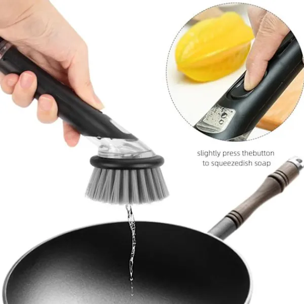 Diskborste för kök med tvålbehållare Skrubber Rengöringsverktyg Svart