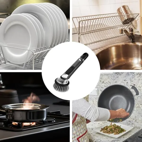 【Mångsidig Rengöring】Idealisk för grytor, stekpannor, disk och stora köksartiklar. Dess flexibla design når hörn och trånga utrymmen, vilket gör den perfekt för diskhoar och spishällar också.