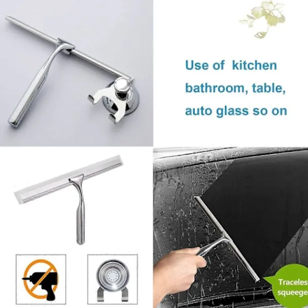 Stabil InstallationFäst med en sugkopp för att hänga rakan stabilt. Rakan har ett mjukt gummiblad som ger effektiv rengöring utan repor. ( Obs: Dela sugkoppen i fyra delar före installation, gummibasen ska tryckas mot den släta ytan först. )