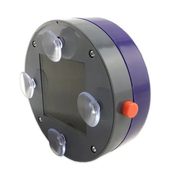 Solpanelen laddar det inbyggda batteriet (1,2V 600mAh Ni-MH) på dagtid.