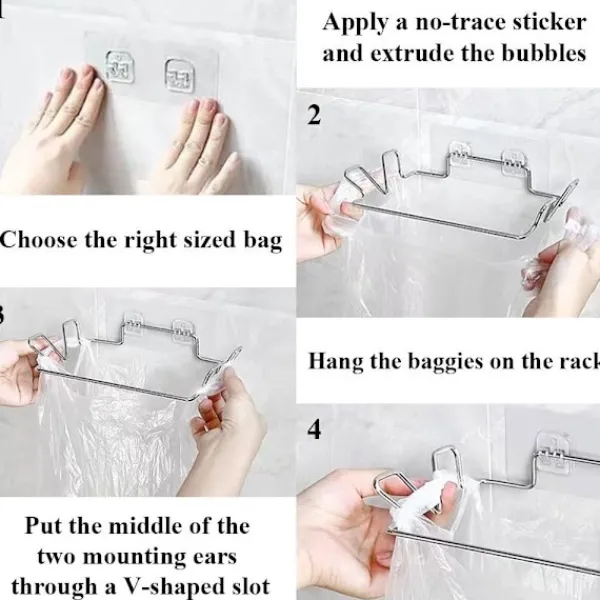 Speciell för kök: Till skillnad från traditionella torra soptunnor kan installation på skåpdörren hjälpa dig att slänga köksavfall närmare och knyta påsen omedelbart efter rengöring av soporna för att förhindra att vått avfall försämras