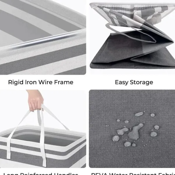 andra saker. [KVALITETSTYG]: Den extra stora tvättkorgen är gjord av högkvalitativt bomulls- och linnematerial. Den vattentäta PEVA-beläggningen inuti korgen håller kläderna torra och lätta att rengöra – torka bara av med en fuktig svamp eller trasa. Obs: Kan inte tvättas i maskin.