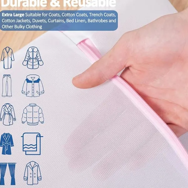 Osynlig dragkedja: Den osynliga dragkedjan på tvättmaskinens tvättnät kan skydda din tvättmaskin och kläder från att rivas sönder. Tvättpåsar förhindrar att du stöter i tvättmaskinen eller torktumlaren under tvätt och förlänger dragkedjornas livslängd