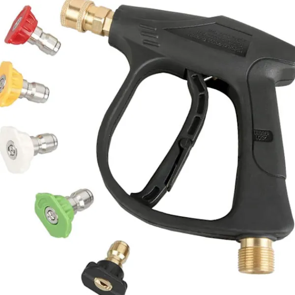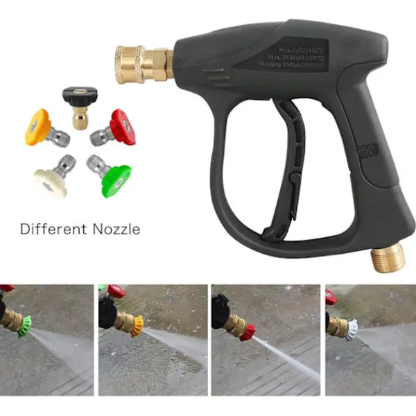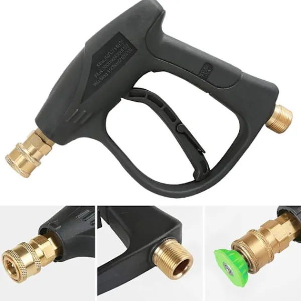 【Premiumkvalitet】Pistolkroppen är tillverkad av teknisk plast, den interna strukturen är av mässing och rostfritt stål, vilket är starkt och hållbart, säkerställer normal drift vid maximalt 3000PSI. Obs: Ej lämplig för trädgårdsslangar.