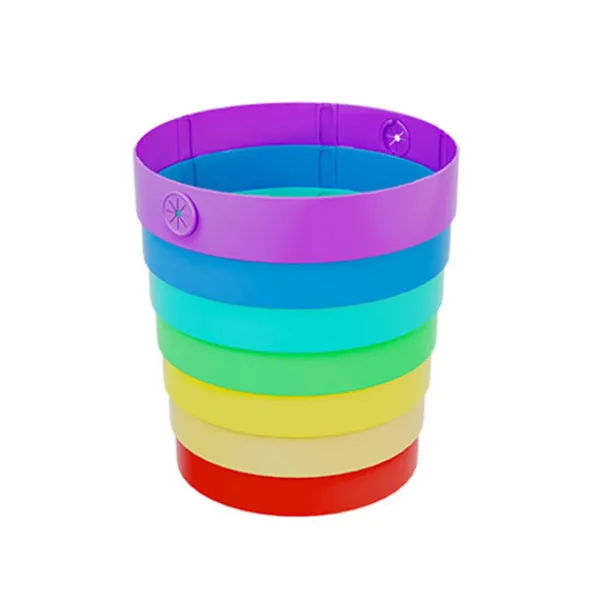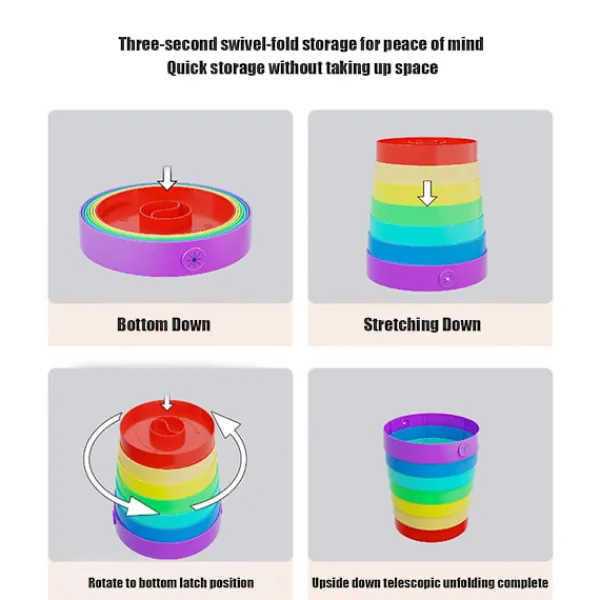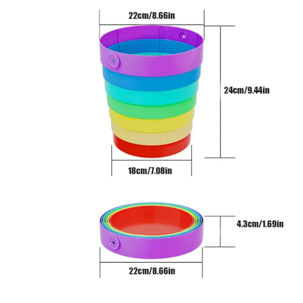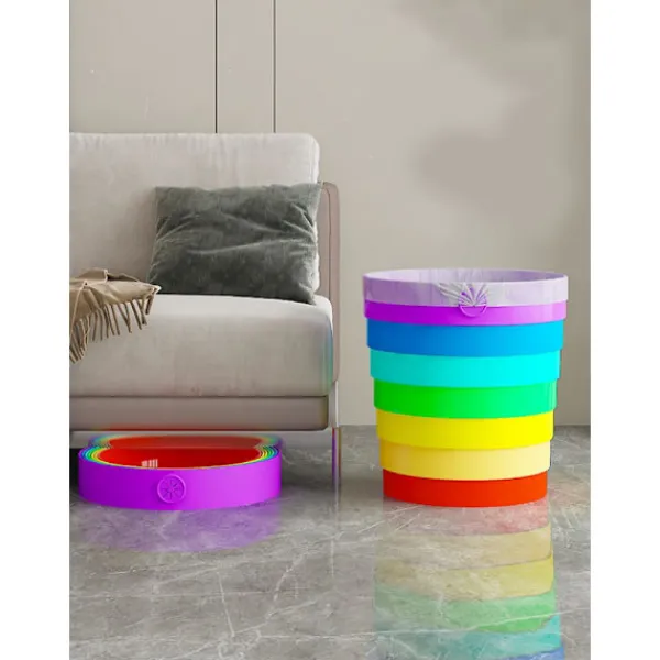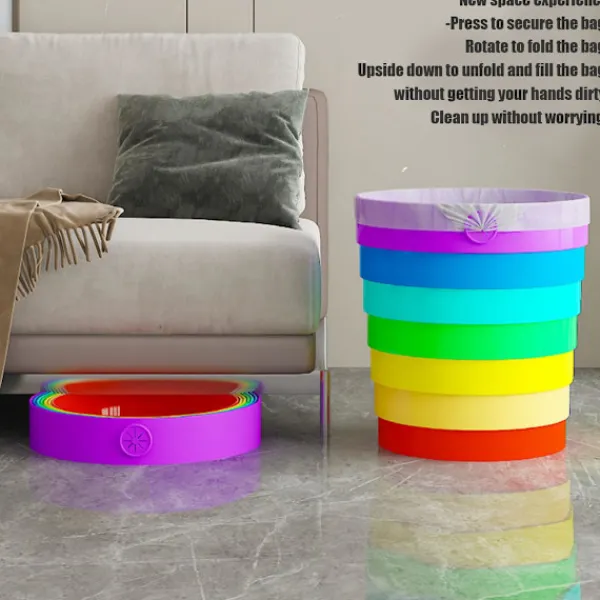 Livfull Regnbågsdesign: Liva upp ditt utrymme med denna iögonfallande färgglada hopfällbara papperskorg med ett glatt regnbågsmönster som ger en rolig färgklick till alla rum, campingplatser eller fordon samtidigt som avfallet hålls snyggt inneslutet.