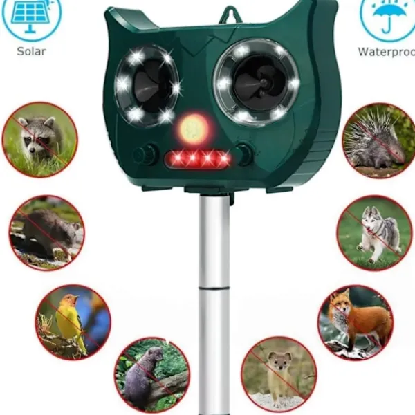 Bekämpa skadedjur med denna ultraljudavskräckare med PIR-sensor som upptäcker objekt som rör sig och som samtidigt avger ett 120 dB ljud med ultraljudsvågor. Dess blinkande ljus håller borta insekter och andra djur som du vill undvika i trädgården. Ljudet kan endast höras av djur, så du slipper störas av ultraljudsfrekvensen.
