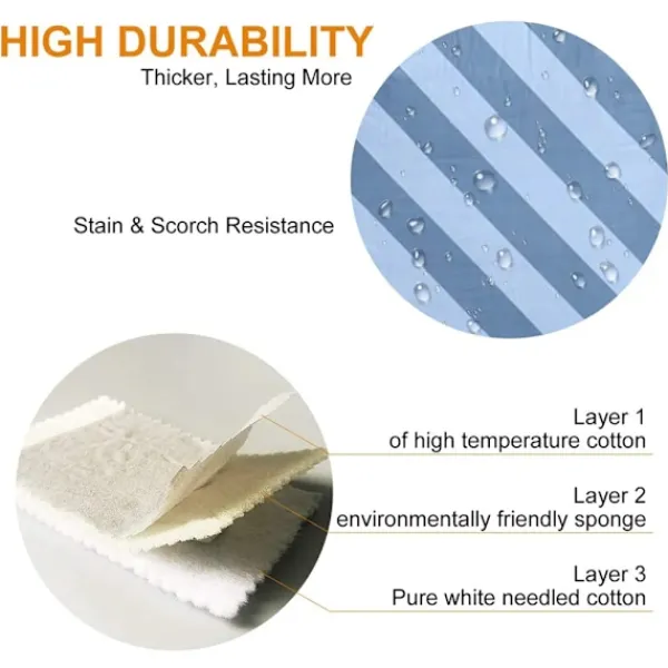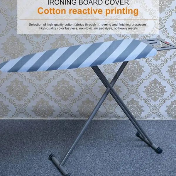 Naturmaterial: Vi lägger stor vikt vid högkvalitativa material. Av denna anledning är det översta lagret av vårt värmebeständiga strykbordsöverdrag tillverkat av 100 % bomull. Premium strykbordsöverdrag
