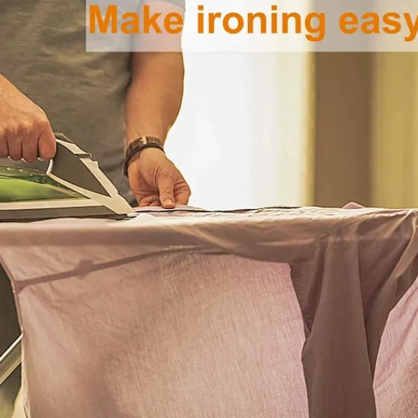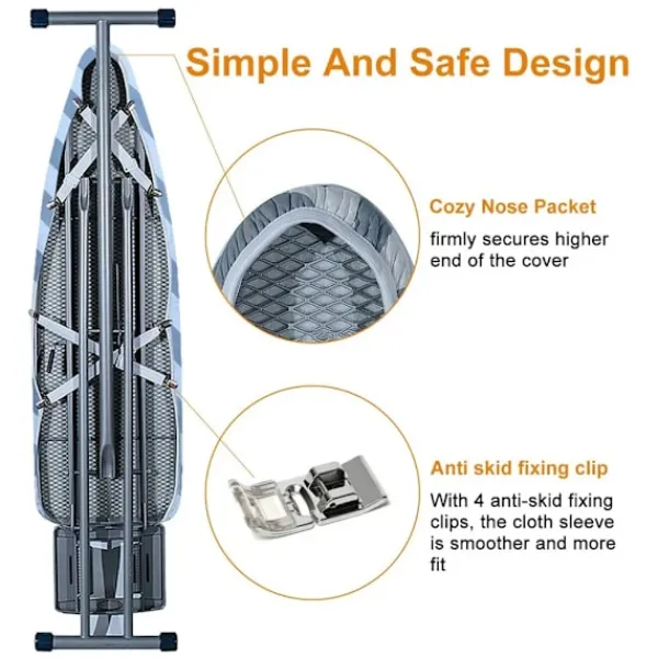 Lätt att fästa: Tack vare det fastsydda elastiska bandet är installationen snabb och enkel – ingen dragsko. Strykbordsöverdraget är lämpligt för ångstrykjärn och är värmebeständigt