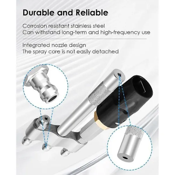 Snabbkopplingsfunktion för enkel installation: Munstycket inkluderar en 1/4 tums snabbkoppling, vilket underlättar snabba och säkra anslutningar. Denna funktion är särskilt användbar för att snabbt växla mellan uppgifter, vilket gör den perfekt för rengöring av höga eller avlägsna platser som tak och väggar.