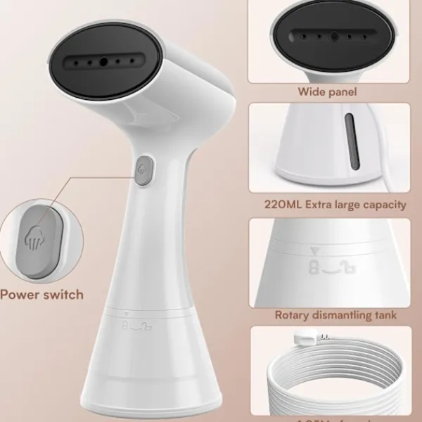 Kompakt och lätt att bära: Rese-ångaren är utrustad med en 220 ml avtagbar vattentank som enkelt får plats i din resväska, enkel ångning hemma och på resande fot. Värms upp på 20 sekunder, spara mer tid för att njuta av en bra dag!