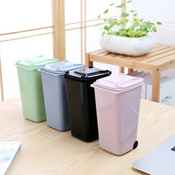 Hushållskontor Kreativ Wheelie Mini Papperskorg Desktop Plast Hink sopkorg Mini avfallskärl Liten sax penna