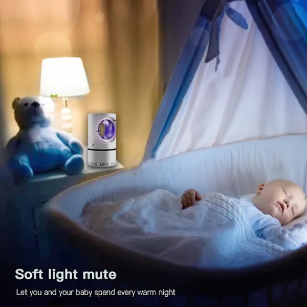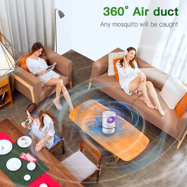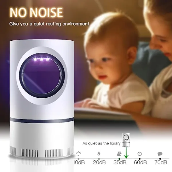 2. ANVÄNDARVÄNLIG – Denna praktiska myggfälla är extremt lätt att använda för alla. Den kan anslutas till vilken enhet som helst med en USB-port eller en vanlig adapter (ingår ej), medan UV-fångstlampan som levereras med en ljusstyrd sensor som stängs och stängs av under dag och natt, beroende på dina preferenser.