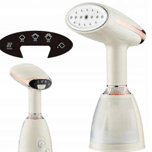 HUR DU STRUKAR DINA KLÄDER SNABBT OCH ENKELT Häng kläder på en galge Häll kallt vatten i förångartanken Starta enheten och vänta på att enheten ska värmas upp Sätt förångarens fot på materialet och börja stryka! Enhetsspecifikation: Färg: Beige / Guld Effekt: 1500W Strömförsörjning: 220-240V, 50/60Hz Vattenbehållare: 280ml Ånggenerering: max. 28g/min. Ånggenereringsreglering: JA, 3-steg Antal ångmunstycken: 7 Mått: 11x16x24cm Kabellängd: 1,8m Enhetens vikt: 0,8kg Setets innehåll: 1x Ångare för kläder XMaster
