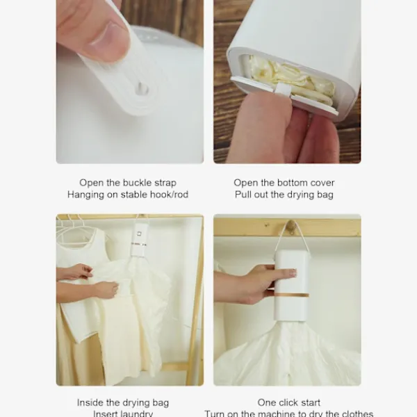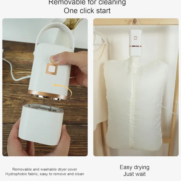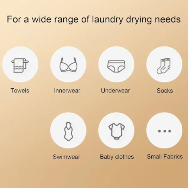 【Inbyggd Torkpåse】Utrustad med en praktisk inbyggd torkpåse, torkar den effektivt underkläder, strumpor och babykläder. Dra bara ut den för snabb torkning när som helst, var som helst, perfekt för små plagg som behövs akut.