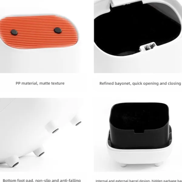 Högkvalitativt material: Papperskorgen är gjord av giftfritt, luktfritt, miljövänligt högkvalitativt PP-material, som är litet, bekvämt, hållbart och har en bra matt textur.