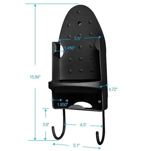 【Mångsidiga upphängningskrokar】- De enkla krokarna på undersidan av strykjärnsorganisatören är utformade för att rymma både T-formade och V-formade fötter