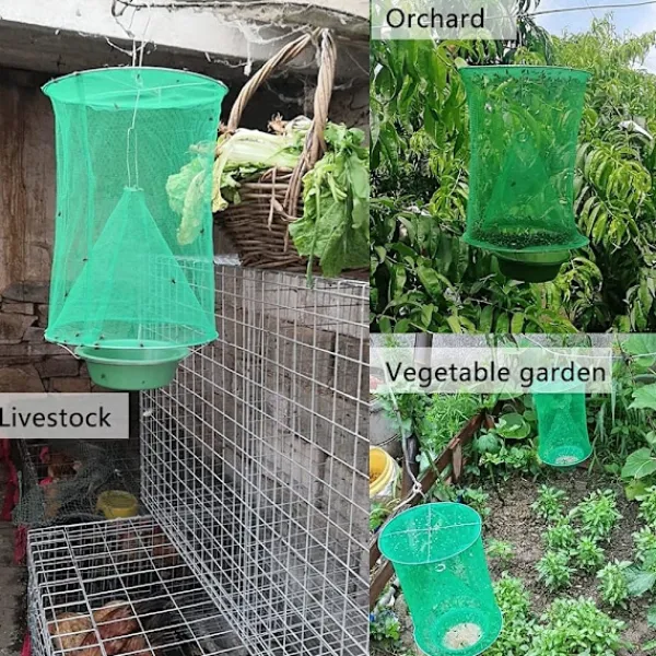 Lätt att använda: med krok, häng bara i 1 meter från marken. Vårsäsongen hänger i mycket solsken, sommaren hänger på mörka platser. Betet måste hållas fuktigt och det måste röras om med vatten för att uppnå lockeffekten. Och du kan tömma din flugfälla genom att koppla bort behållaren och vända nättratten.