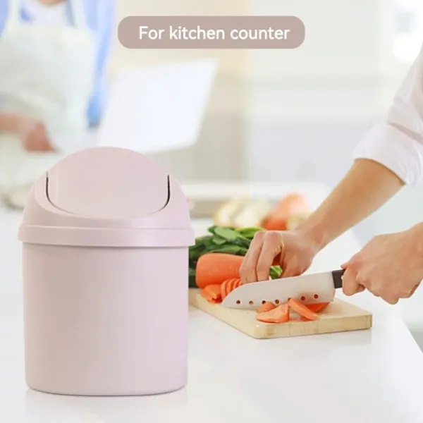 ♻️ SVÄNGLOCKDESIGN: Den speciella svänglockdesignen är inte bara bekväm för dig att använda enkelt, liten behållare med lock, utan även liten papperskorg kan effektivt minska spridningen av lukter och isolera fruktflugor.