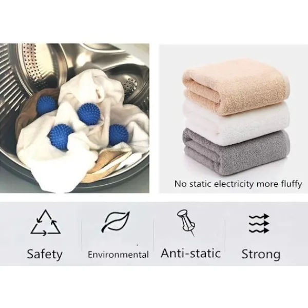 Små piggar på torkbollarna masserar tyget för att hjälpa till att ta bort rynkor, vridningar och trassel, vilket gör kläderna mjuka och fluffiga och minskar statisk elektricitet.