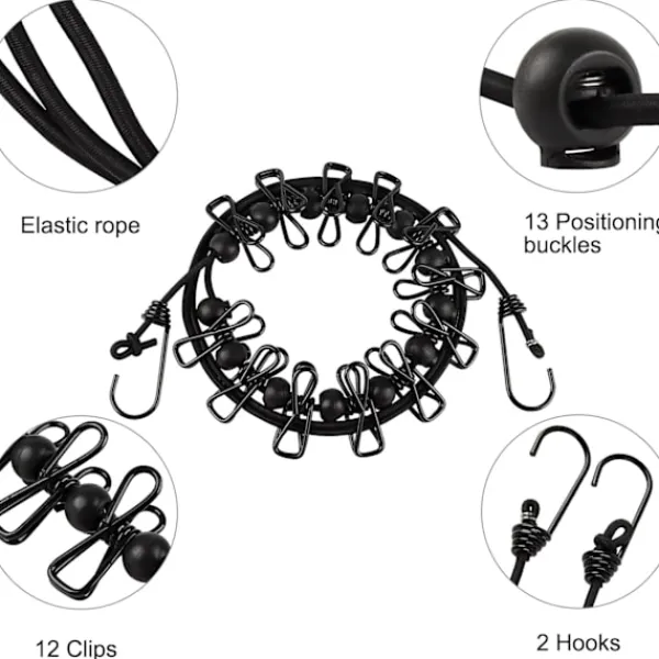 Utrymmesbesparande: Klädstrecket med krok kan vikas ihop och förvaras i bagage eller bil för att spara utrymme. Perfekt för resor och resor!