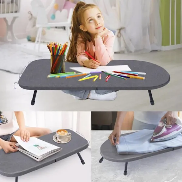 Strykbrädan är utrustad med en glidande strykjärnsställning för enkel åtkomst och en inbyggd hänge för vägg- eller dörrmontering – perfekt för kompakt förvaring.