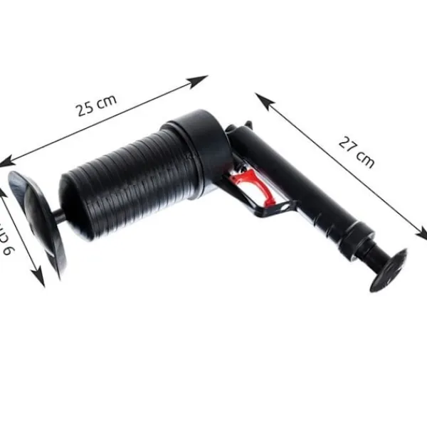 - FJÄRRAR BLOCKERINGAR – är en mycket praktisk anordning för att rensa rör använder tryckluft för att avlägsna blockeringar i vatten- och avloppssystemet. Den är tillverkad av plast av högsta kvalitet, vilket gör den hållbar. Med hjälp av den kan du, utan att använda elektricitet, rensa de svåraste blockeringarna i avloppet. Dess ergonomiska form gör den bekväm att använda.