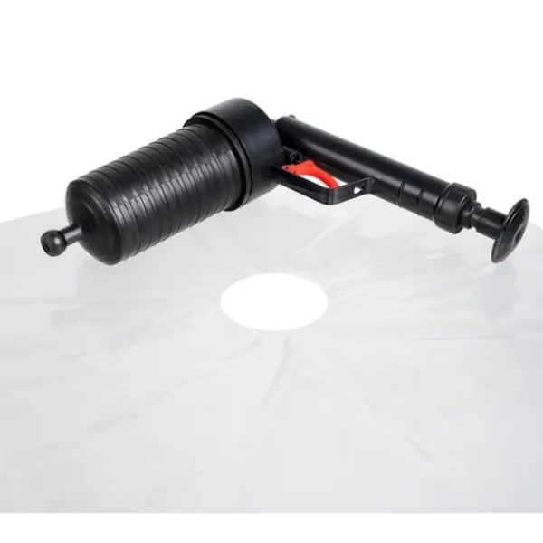 Tack vare denna unika enhet kommer du att glömma problemen med igensatta rör eller avlopp en gång för alla. Den trycksatta rörblockeraren är ett tillbehör som gör att du kan rensa alla igensatta platser i ditt hem med hjälp av luft. Satsen innehåller en pistol tillverkad av högkvalitativ plast och så många som 4 munstycken i olika former som passar till avloppet i toaletten, tvättstället, handfatet, duschkabinen eller badkaret. Du behöver inte bry dig om vanliga kolvar som är fulla av bakterier och miljöskadliga kaustiska rengöringsmedel.