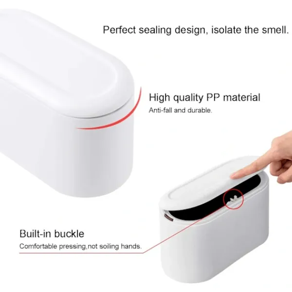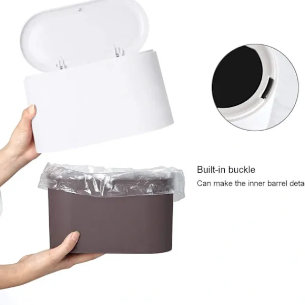 Inbyggt dubbelskiktslock: Bordskorgen har ett inbyggt dubbelskiktslock och en inbyggd spänne, som kan hjälpa dig att sätta fast soppåsen och den inre behållaren kan fästas säkert, vilket förhindrar att den faller av under rörelse. Det inbyggda dubbelskiktshöljet döljer också soppåsen bättre, vilket gör bordskorgen säkrare, vackrare och renare.
