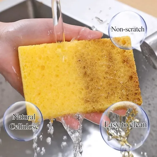 Naturliga Cellulosasvampar: Våra disksvampar är gjorda av högkvalitativ växtträmassa, biologiskt nedbrytbara och miljövänliga. Inga fler dåliga lukter för daglig användning. Naturligt gul, bleknar inte.