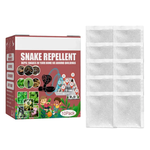 1、1. Avvisa ett brett utbud av ormar: Vårt ormskrämmedel kan avvisa många typer av ormar: gröna ormar, skallerormar, kopparhuvuden, tjurormar, mjölksormar, vattenormar, strumpeband (trädgårds) ormar, svarta ormar och indigoslangar. 2、2. Kraftfull avmaskning: Tillverkad av naturliga örter, den avger en lukt som gör ormar obekväma och tvingar dem att lämna. 3、3. Säkert ormskrämmedel: Ormskrämmedel är ogiftigt för människor och husdjur och kan användas säkert på gårdar, gräsmattor, camping och till och med hemma. Använd ormskrämmedel enligt våra anvisningar. 4、4. Lätt att använda: Placera ormavvisaren där du ser ormar dyka upp eller där de kommer att passera. Ormar finns vanligtvis i områden där gnagare finns, eftersom detta är en av deras huvudsakliga födokällor. Å andra sidan föredrar de mörka, fuktiga platser, så tänk på dessa områden när du överväger ett ormavvisande medel. För bättre resultat, placera ett avvisande medel var 3-6 fot (cirka 0,9-1,8 meter). 5、5. Förpackning: Det finns 10 ormavvisande förpackningar i förpackningen, och en ormavvisande förpackning kan hålla i cirka 2 månader.