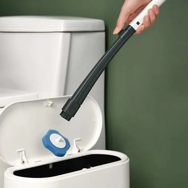Dessa engångsborstar för toalett fästs på toaletten och används för att svänga, skrubba och rengöra toalettstolen. De är lätta att ta bort och kasta i soporna.