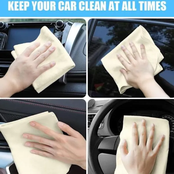 【UNIVERSELLA RENGÖRINGSSTILAR】 Sämskskinn inte bara för bilar. Sämskskinn kan också användas för att rengöra hushållsmöbler, fönster, glas, speglar, kameror, mobiltelefoner, klockor, smycken och mer. Idealiskt rengöringsverktyg för bil och hem. Återanvändbar och hållbar.