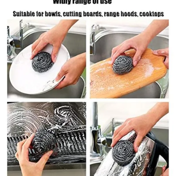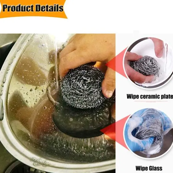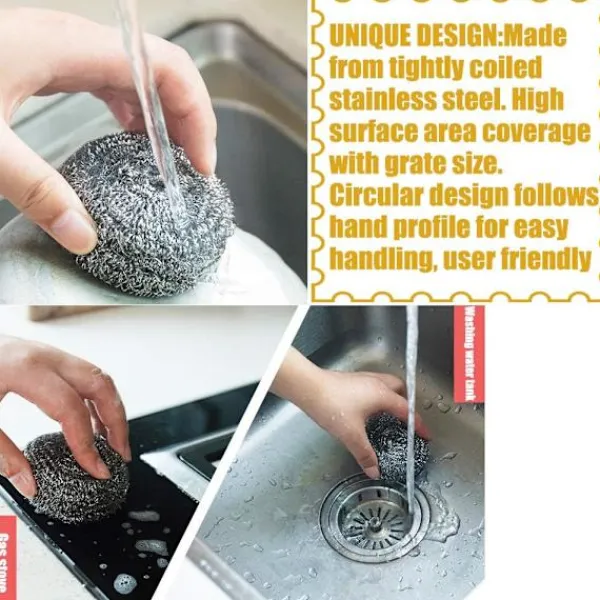 Dessa rengöringskulor i rostfritt stål är gjorda av tätt spiralformad rostfritt stål och kan användas för aggressiv skrubbning och rengöring. Perfekt för att ta bort fett och smuts från kastruller, stekpannor, bakformar och mer, dessa svampar är idealiska för diskar som tål kraftig skrubbning.Hur man använder dem: Rengörs enkelt genom att sköljas och tvättas i tvålvatten. Om du vill rengöra din spis eller botten av en kastrull kan du blöta den rostfria stålkulan, sedan tillsätta lite diskmedel och rengöra det rostiga stället upprepade gånger. Skurern kan hjälpa dig att rengöra din kökspott, stekpanna, etc, används ofta i vardagen.Lätt att använda: Perfekt att använda på ugnar, grillar, kastruller, stekpannor, utomhusmöbler, verktyg och mer.Ta bort envis fett och smuts enkelt. Och lätt att rengöra. Mjuk och elastisk. En bra hjälpare i ditt unika kök.Vad du får: Setet innehåller 16 pack tvättbara rostfria stålkulor. Varje kula är cirka 30 g. Diametern på varje kula är mellan 5 cm till 5,5 cm.