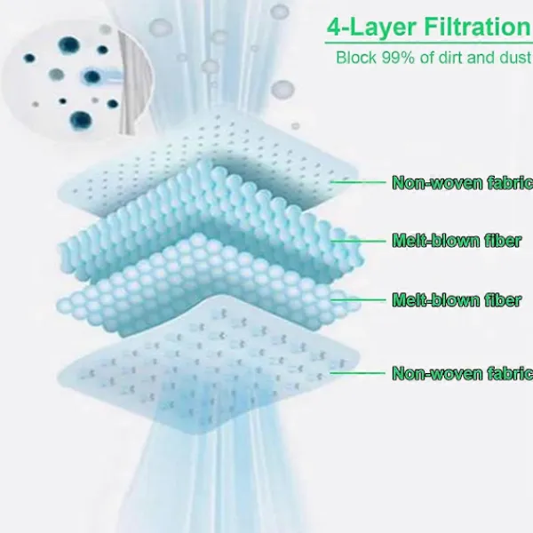 Avancerad filtreringsteknik: Varje påse har ett dubbelt lager av superfina smältblåsta fibrer och två lager av non-woven-tyg, vilket ger överlägsen tätning och effektiv damminneslutning. Njut av en renare miljö med minimalt dammutsläpp under bortskaffande.