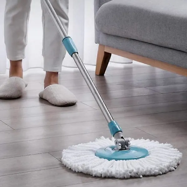 Den nya hållbara mopphuvuddesignen kan roteras fritt genom att vrida för att rengöra varje hörn jämnt och enkelt.